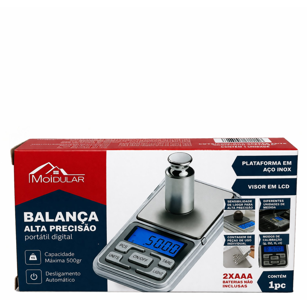 Compacta e fácil de transportar, ela possui alta sensibilidade, permitindo pesar pequenas quantidades com precisão geralmente a partir de 0,1g até o limite de 500g . É perfeita para uso em cozinhas, joalherias, farmácias, laboratórios ou qualquer atividade que exija controle rigoroso de peso.