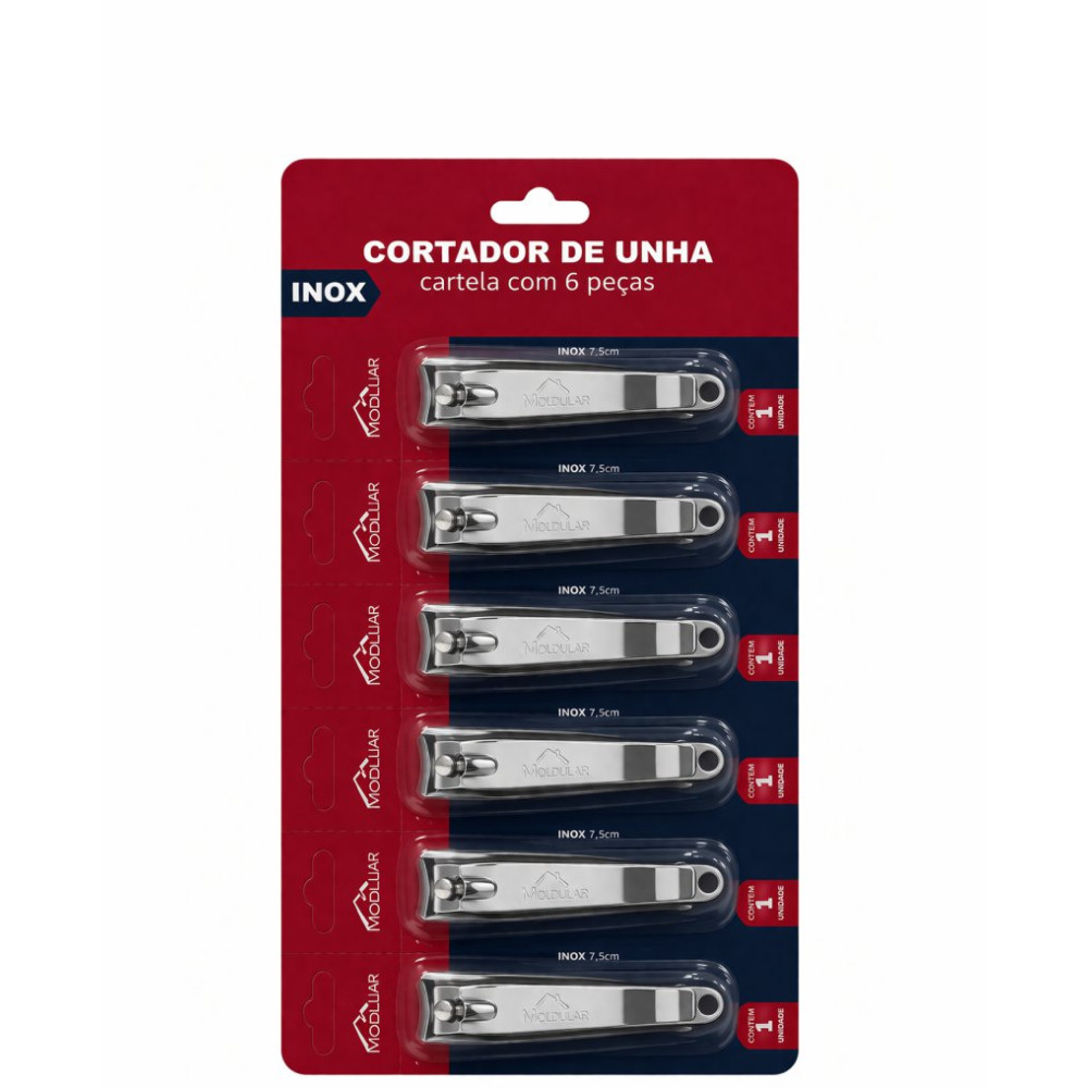 CORTADOR DE UNHA INOX GDE 7,5CM CART C/6 PÇS