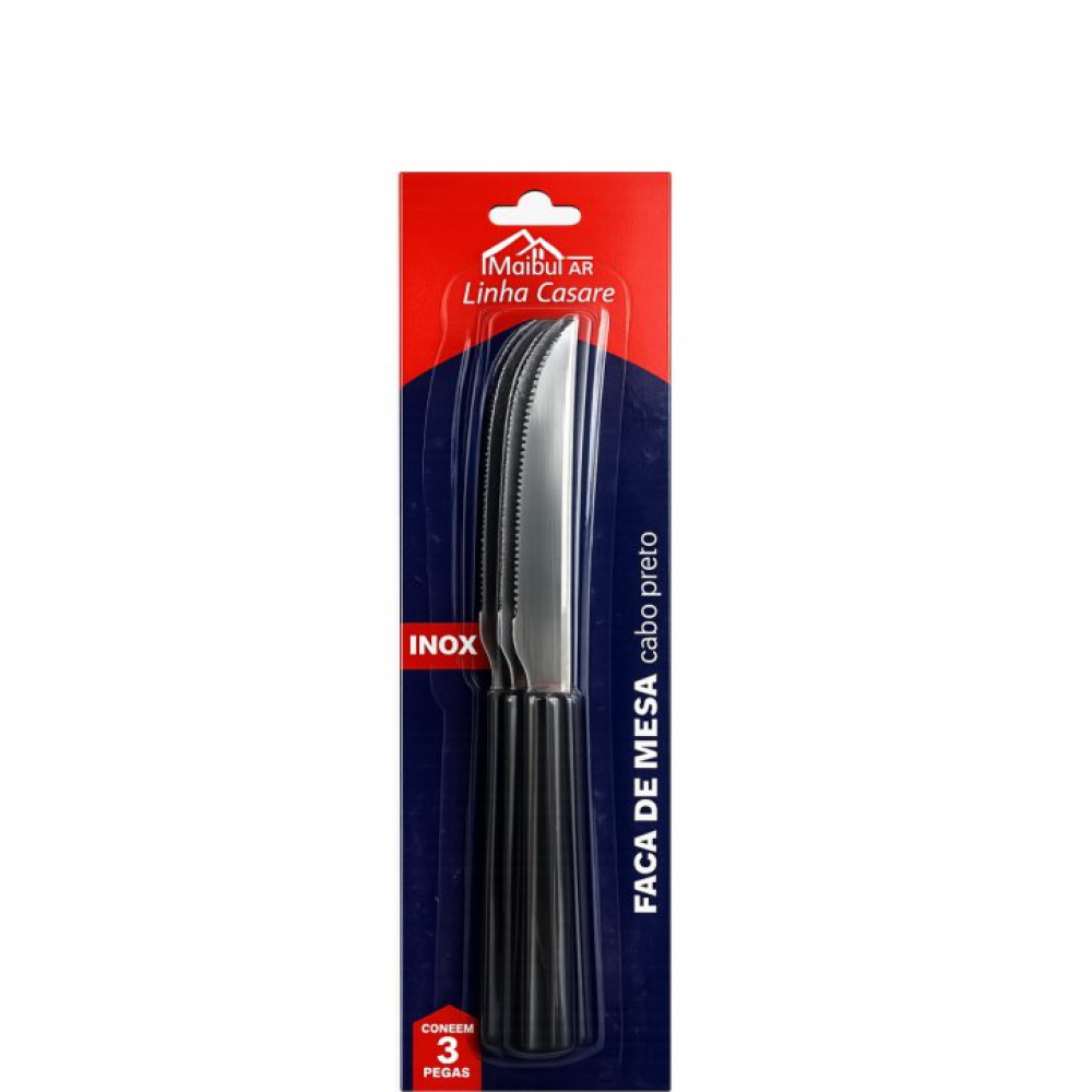 FACA P/MESA INOX CABO PTO C/3PÇS MR391