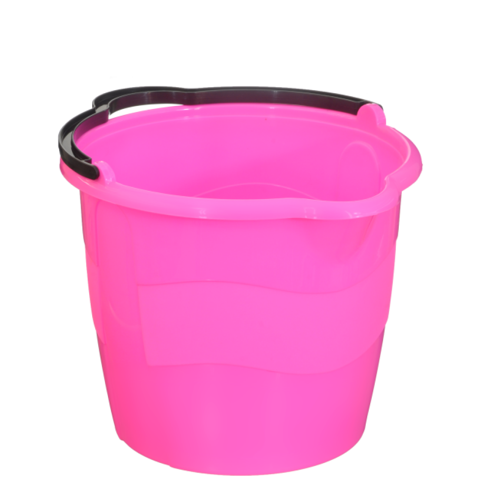 BALDE PLASTICO 6LTS C/PEGA ROSA NEON C/12 116