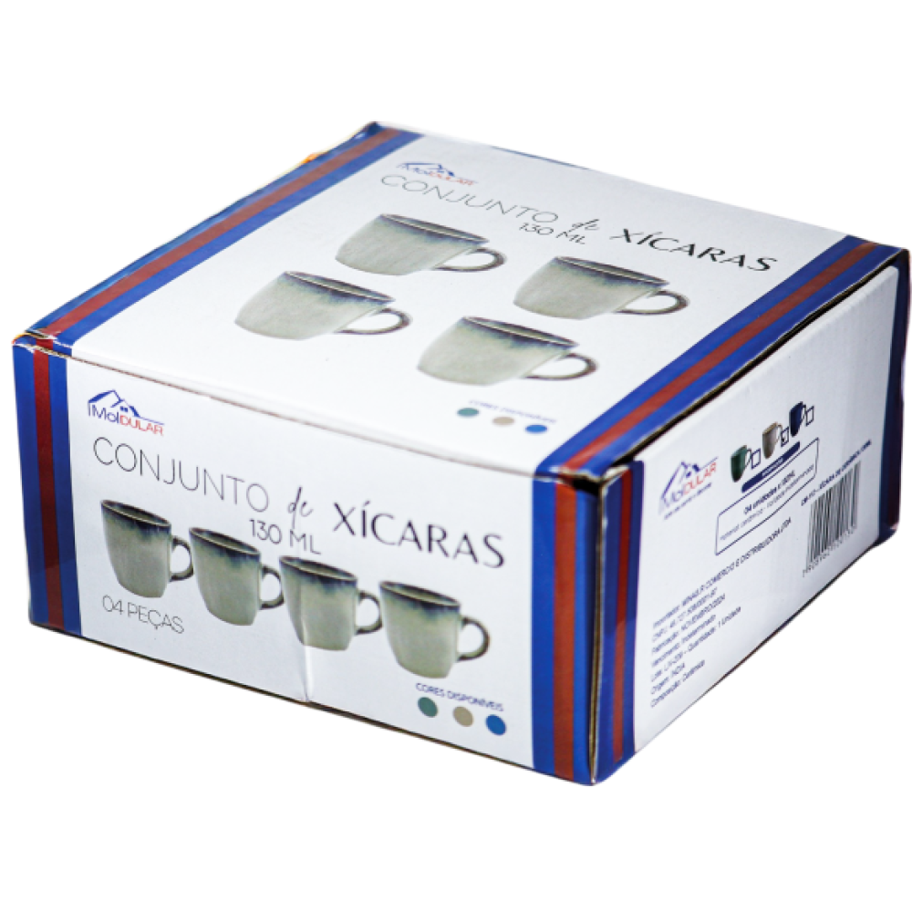 CONJ.DE XICARAS CERAM.BRILH.COR 130ML C/4PCS