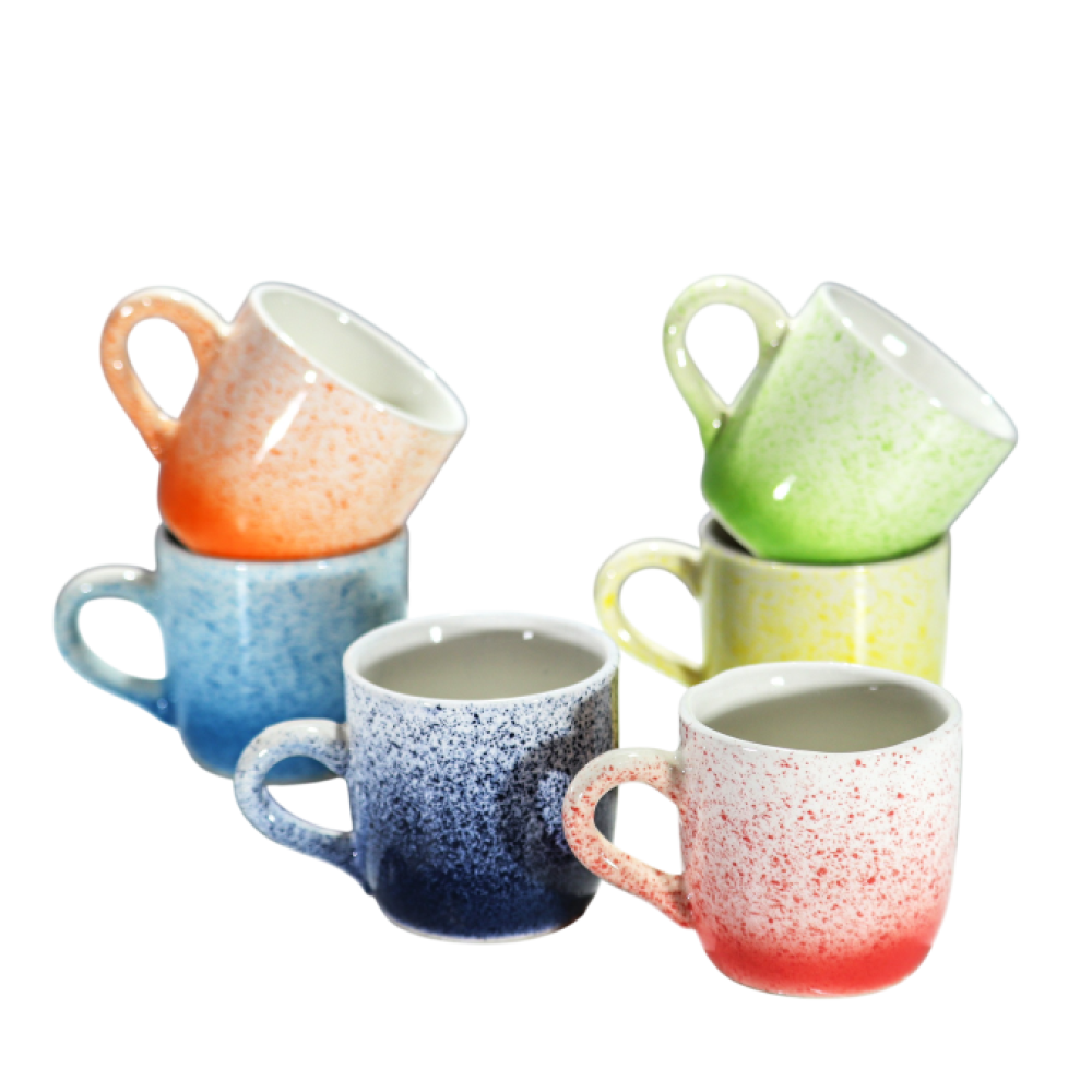 O Conjunto de Xícaras de Cerâmica Chuvisco Degradê 90ml é ideal para servir café com sofisticação e um toque artesanal. Com acabamento em cerâmica de alta qualidade, as peças possuem efeito degradê com pintura estilo chuvisco, que proporciona um visual único e elegante. Cada xícara tem capacidade para 90ml, perfeita para café expresso ou curto. Conjunto com 6 unidades, ideal para uso doméstico, presente ou compor uma mesa posta charmosa.