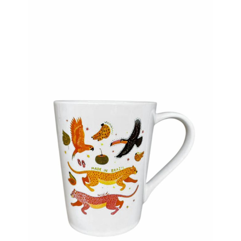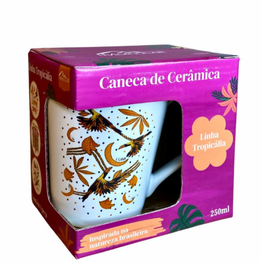 Com estampa inspirada na Tropicália, apresenta cores vivas e elementos tropicais que remetem ao clima brasileiro, trazendo leveza e personalidade à sua rotina. Ideal para café, chá ou qualquer bebida quente ou fria, conta com capacidade de 250 ml e é compatível com micro-ondas.