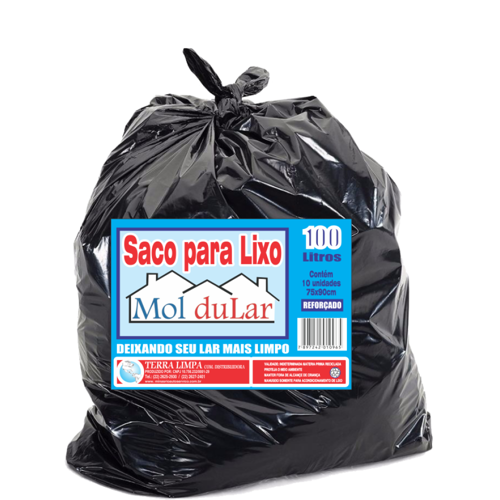 Saco para Lixo 100L Reforçado 75x90cm – 10x10 unidades