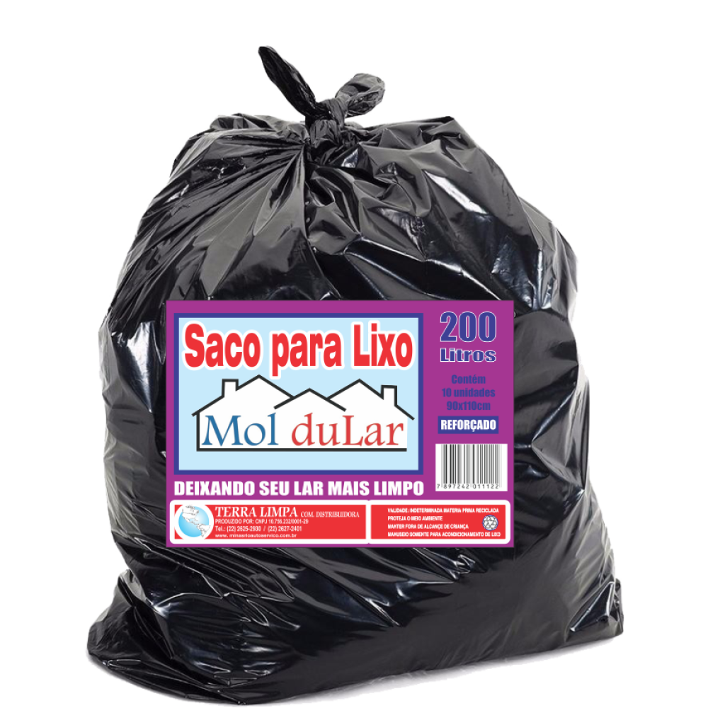 Saco para lixo reforçado com grande capacidade de 200 litros, ideal para o descarte de resíduos volumosos e pesados em ambientes industriais, comerciais e eventos. Com medidas de 90x110 cm, oferece excelente resistência e durabilidade.