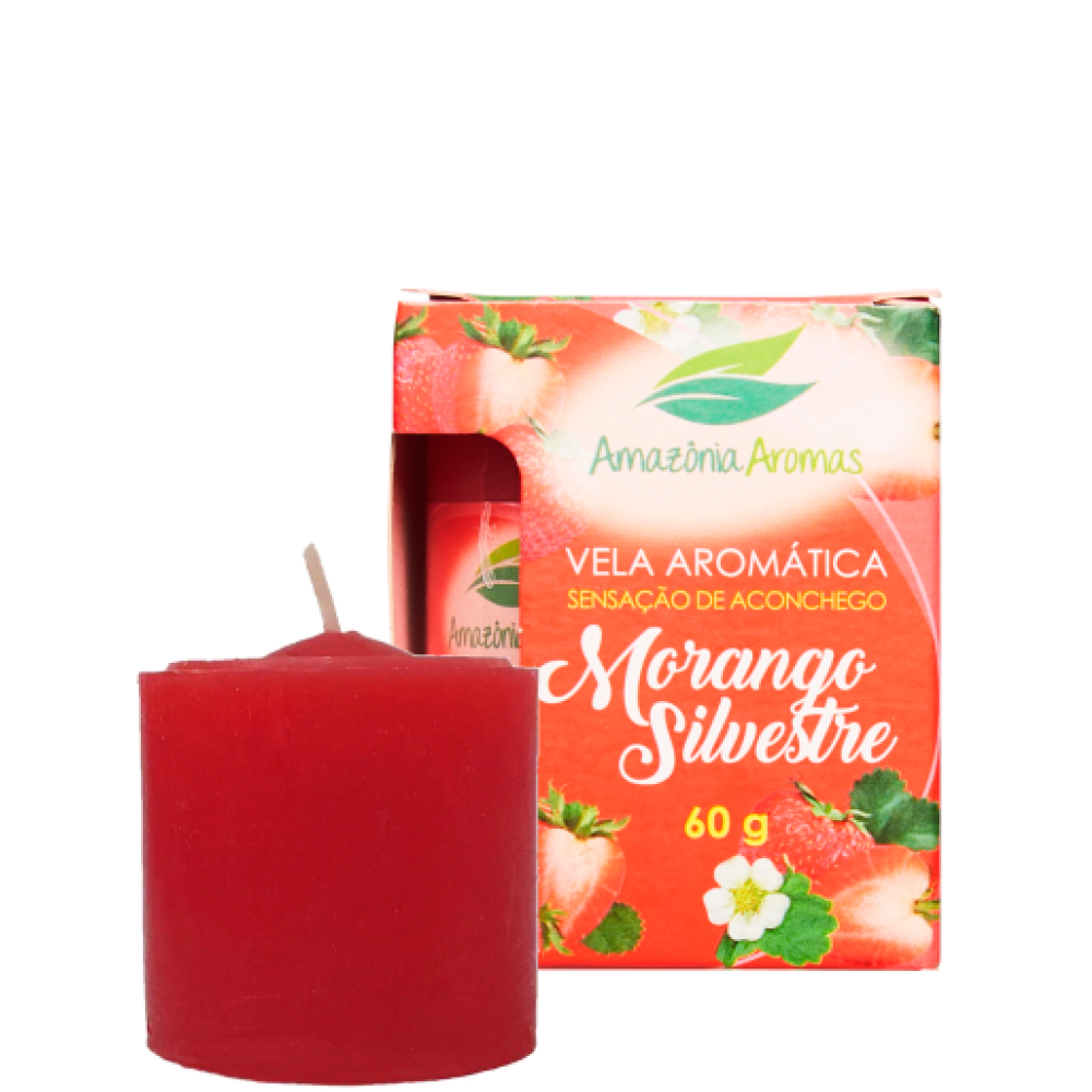 Vela perfumada de 60g com aroma doce e frutado de morango silvestre, ideal para perfumar ambientes com uma fragrância acolhedora e refrescante. Perfeita para uso em residências, escritórios e espaços que desejam um toque suave e agradável.