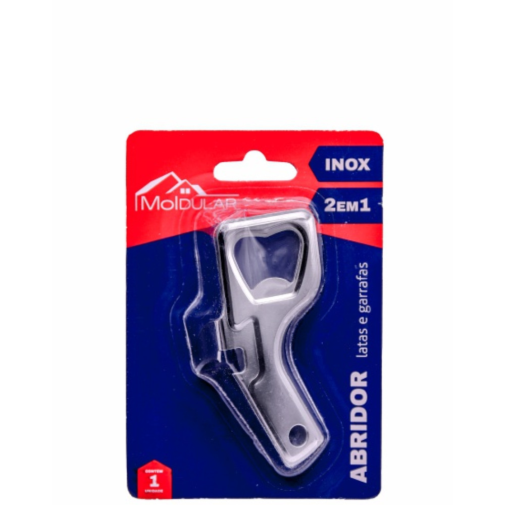 Praticidade e durabilidade em um só utensílio! O Abridor 2 em 1 da Moldular é feito em aço inox e possui 9cm de comprimento, sendo ideal para abrir tanto latas quanto garrafas com facilidade e segurança.
