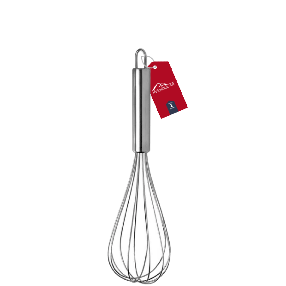 O Batedor de Ovos da Moldular é feito em aço inoxidável, garantindo resistência, higiene e longa vida útil.