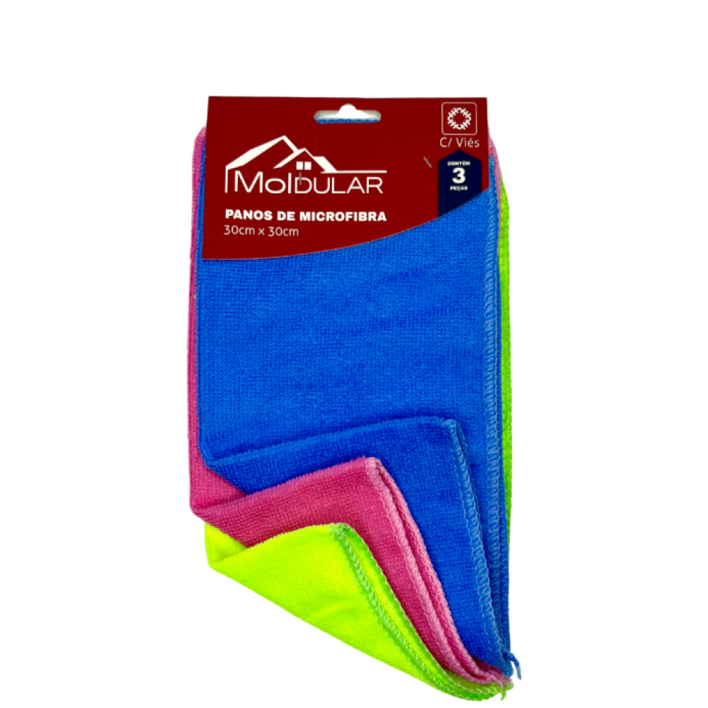Contém 3 panos de microfibra com viés