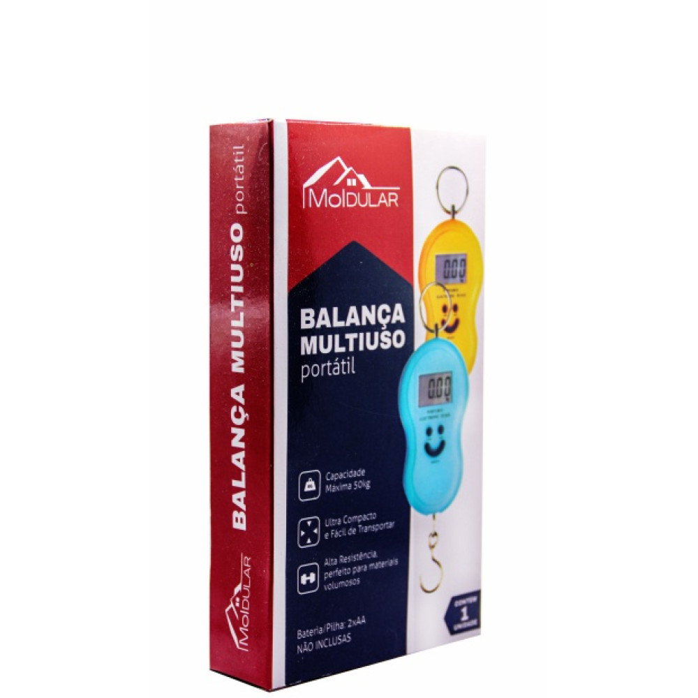 Praticidade e precisão em qualquer lugar! A Balança Multiuso Portátil da Moldular é a solução ideal para quem precisa pesar materiais volumosos com facilidade e segurança. Com capacidade máxima de 50 kg, ela é perfeita para uso em viagens, envios, pescarias, feiras e muito mais.