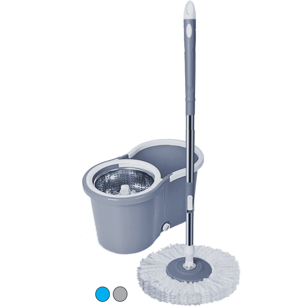 O sistema de esfregão giratório proporciona uma limpeza profunda com menos esforço, e o dreno embutido permite esvaziar a água com facilidade, sem sujeira ou bagunça. Para completar, o balde possui rodinhas que facilitam o transporte por todos os ambientes, evitando o peso e garantindo mais mobilidade. Disponível nas cores Azul e Cinza.