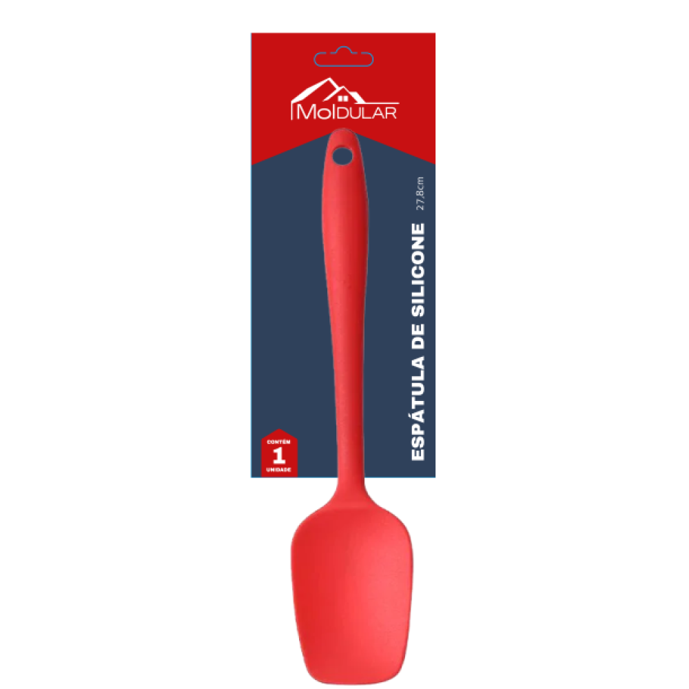 A espátula de silicone da Moldular é o utensílio ideal para misturar, raspar, espalhar e virar alimentos com eficiência e delicadeza. Com 27,8 cm de comprimento e 6,1 cm de largura, oferece ótima ergonomia e controle durante o uso.