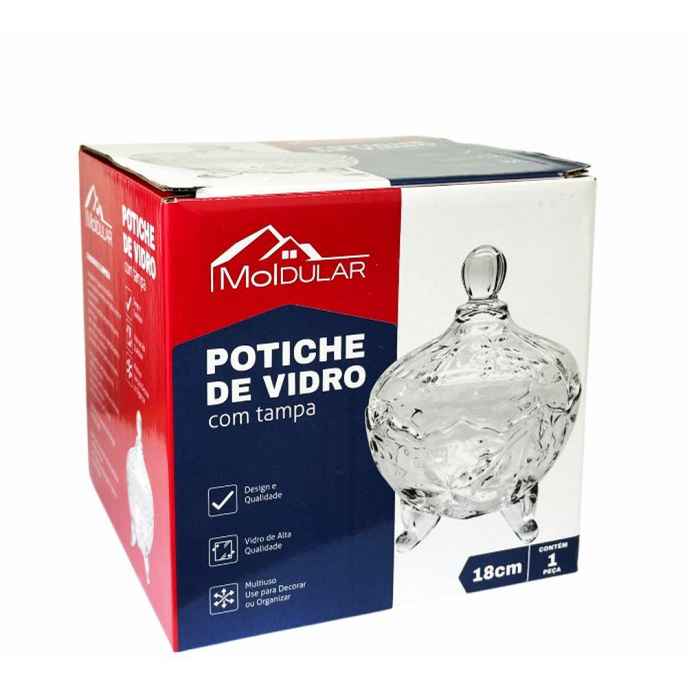 A Bomboniere de Vidro da Moldular é uma peça elegante e funcional para compor a decoração de qualquer ambiente. Com 18cm de altura, ela é perfeita para armazenar e servir doces, balas, biscoitos e outros itens com charme e sofisticação. Seu design com pé elevado e tampa com pegador proporciona praticidade e um toque refinado à mesa ou à decoração.