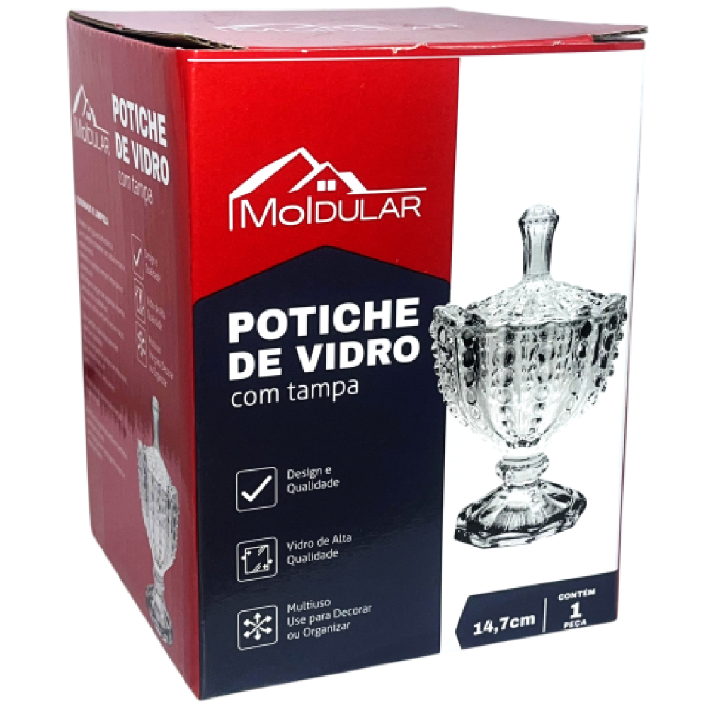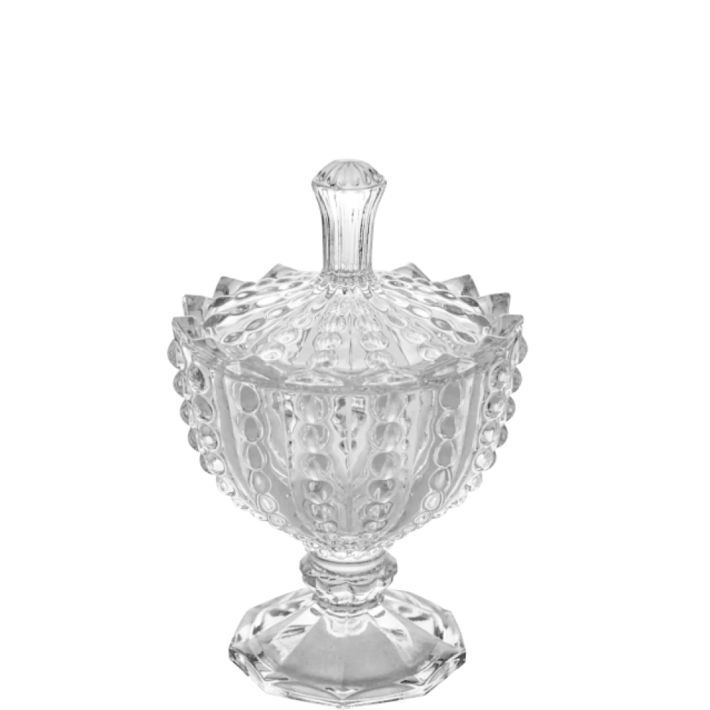 O pé elevado confere um toque clássico, enquanto a tampa com pegador facilita o uso no dia a dia. Ideal para armazenar doces, bijuterias ou como item decorativo em lavabos, aparadores e mesas de centro.