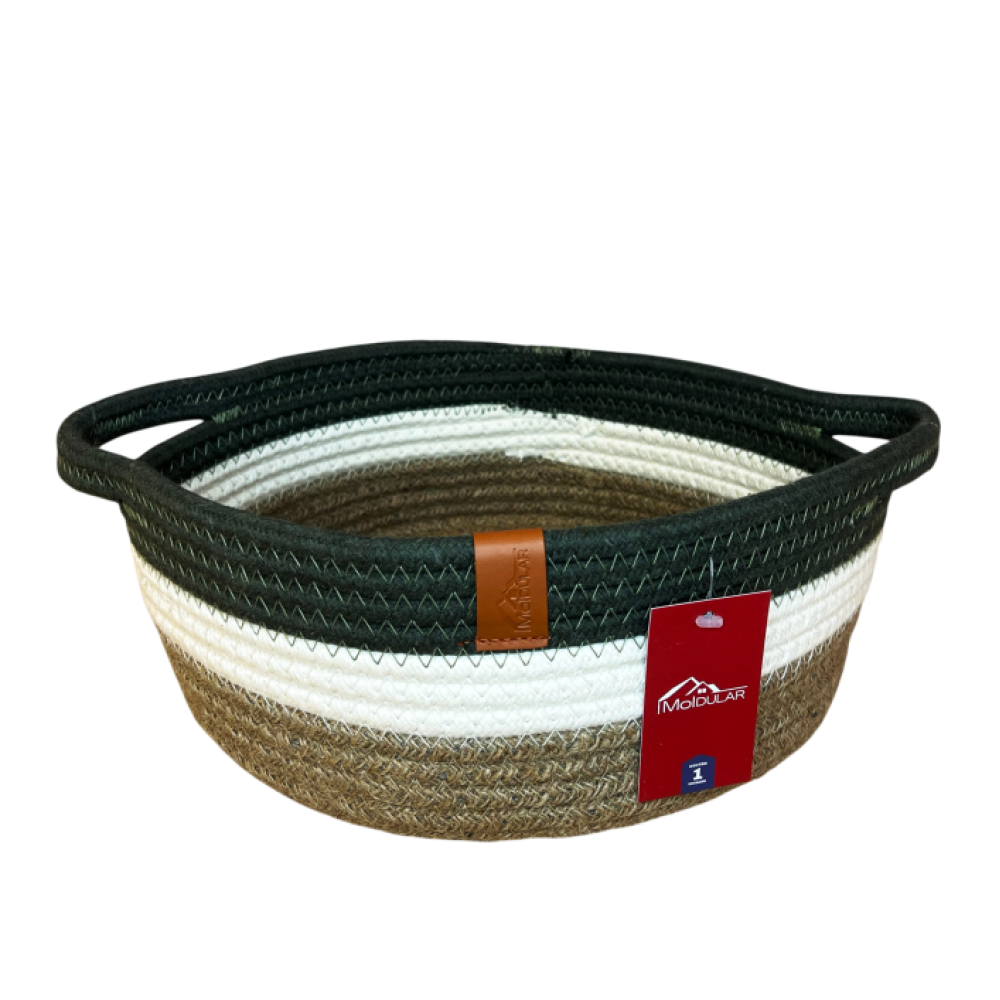 Compacto, prático e elegante, o cesto redondo é confeccionado em algodão e juta, com alça para transporte, unindo funcionalidade, resistência e design sofisticado. Ideal para organizar acessórios, objetos pessoais ou pequenos itens, agregando charme e praticidade a qualquer ambiente.