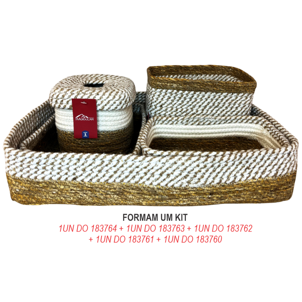 Funcional e resistente, o cesto retangular é confeccionado em algodão, juta e fibra natural, proporcionando um design rústico e elegante. Ideal para organizar pequenos objetos, acessórios ou itens pessoais, mantendo o ambiente prático e bem decorado.