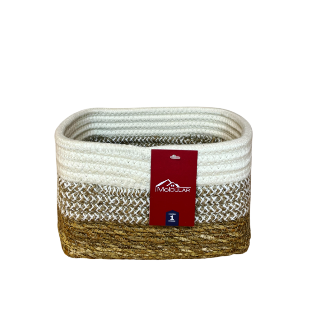 Pequeno, prático e resistente, o cesto retangular é confeccionado em algodão, juta e fibra natural, unindo durabilidade e um acabamento rústico sofisticado. Ideal para organizar pequenos itens, acessórios ou objetos pessoais, oferecendo funcionalidade e charme em qualquer ambiente.