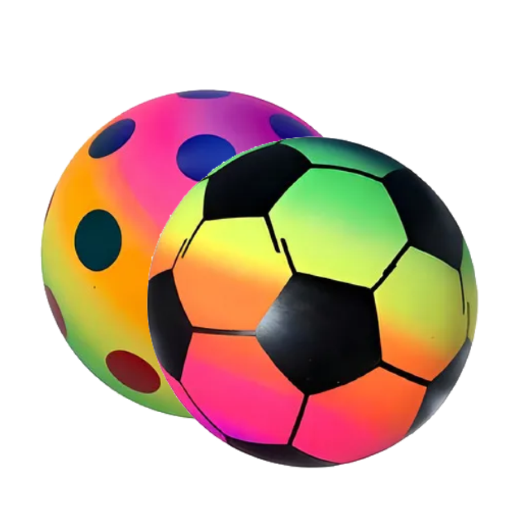 Bola leve e colorida, ideal para crianças e brincadeiras seguras. Possui peso entre 58 e 62 gramas, sendo fácil de manusear e perfeita para estimular coordenação motora e diversão. Disponível em cores degradê sortidas.