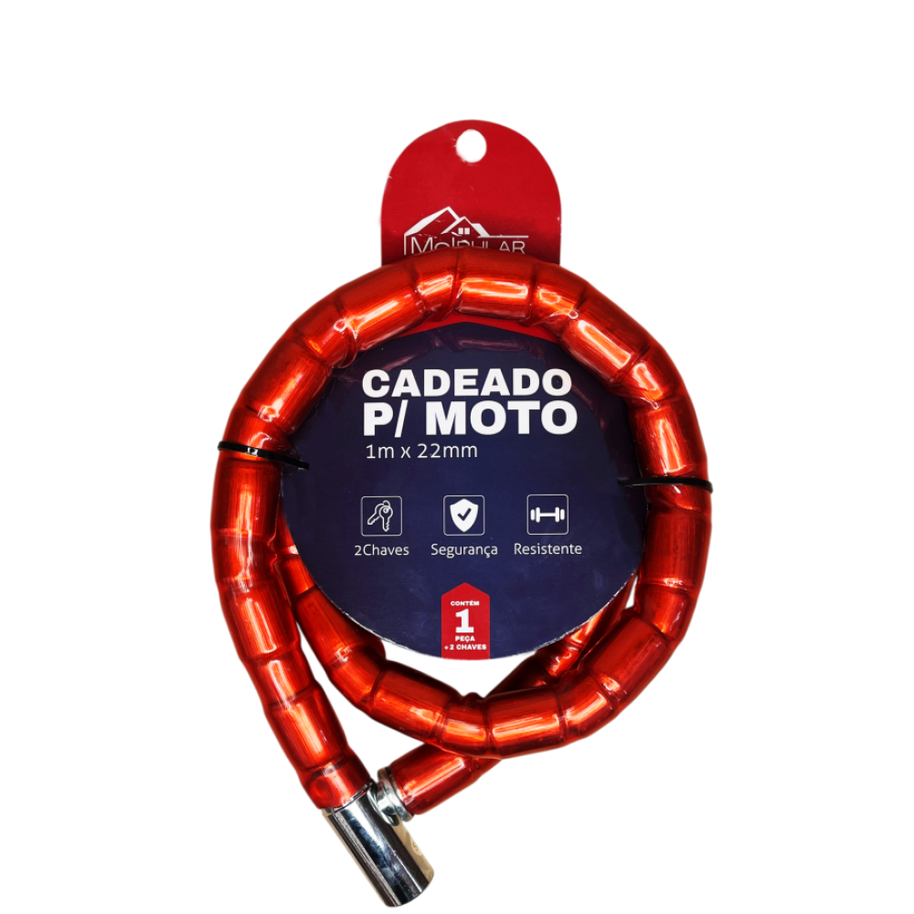 O cadeado para moto de 1 metro x 22mm garante segurança reforçada e praticidade no dia a dia. Fabricado em cabo de aço de alta resistência com revestimento em PVC, oferece maior durabilidade e proteção contra tentativas de corte, sem danificar a pintura. Acompanha duas chaves para facilitar o uso.