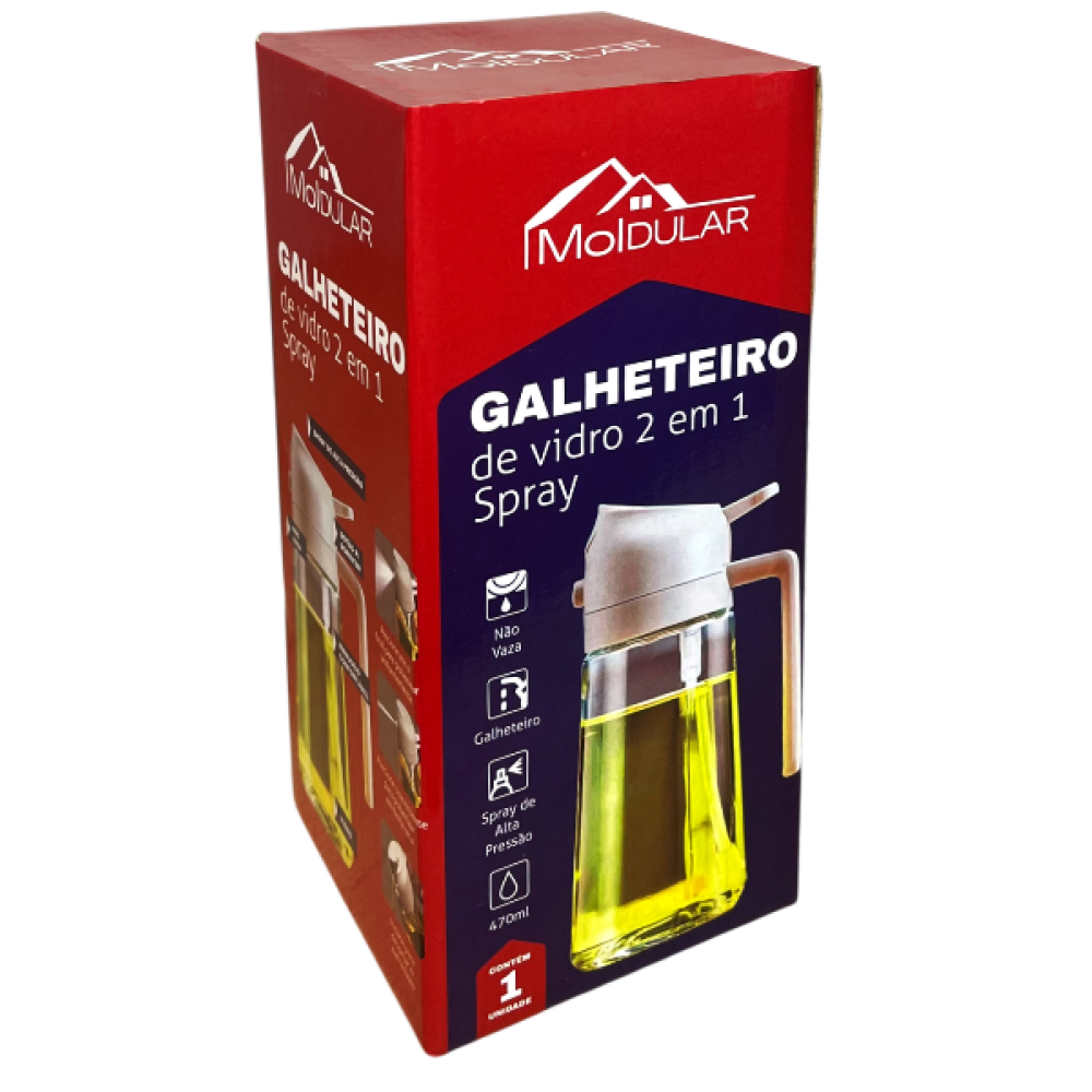 Prático e versátil, o galheteiro de vidro 2 em 1 com spray é ideal para armazenar e dosar azeite, óleo, vinagre ou outros líquidos. Com design elegante e funcional, permite controlar a quantidade de líquido com o spray, evitando desperdícios. Perfeito para uso na cozinha, mesa de refeições ou preparo de receitas.