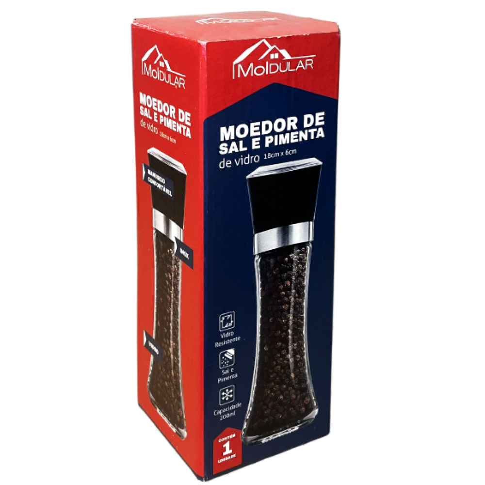 MOEDOR DE SAL E PIMENTA DE VIDRO 200ML 18CM