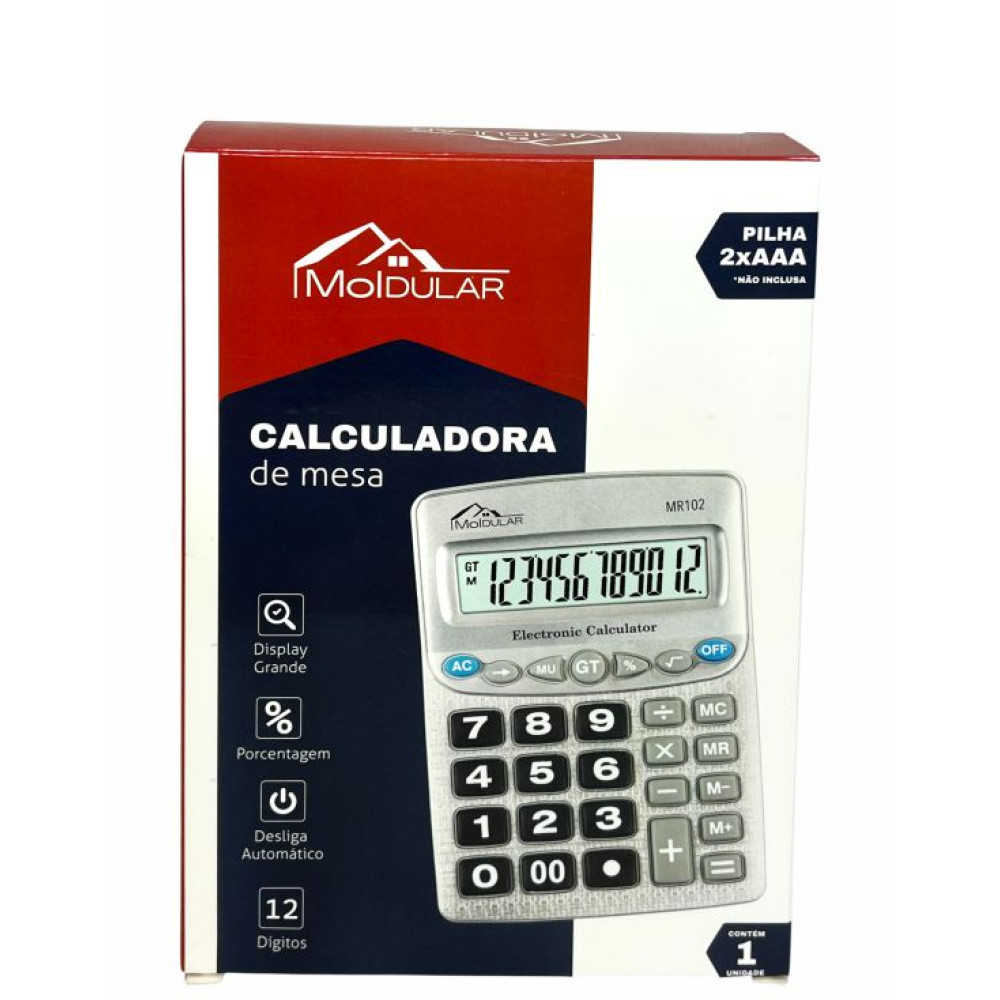 CALCULADORA DE MESA GDE 18CM 12 DIG.A PILHA MR102