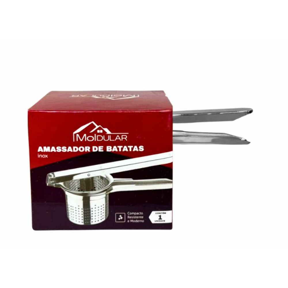 O Amassador de Batata Inox é ideal para quem busca resultados rápidos e purês extremamente macios. Produzido em aço inoxidável de alta resistência, ele funciona como uma prensa, garantindo que a batata seja espremida de forma uniforme, sem esforço e sem grumos. Seu tamanho aproximado de 25cm proporciona pegada firme, fácil uso e excelente desempenho no dia a dia.