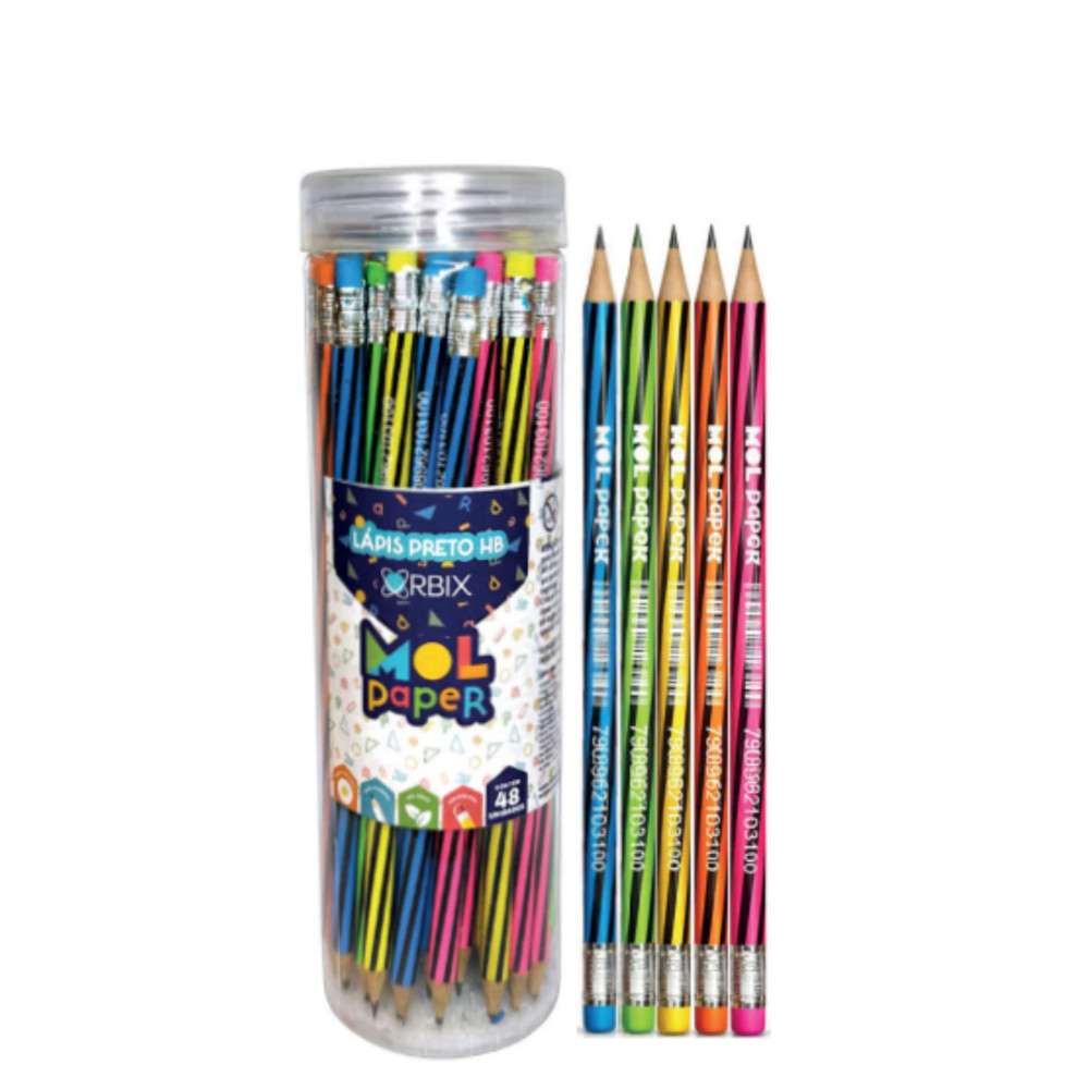 O Lápis Preto Orbix com Borracha (Pote com 48 unidades) é ideal para uso escolar, escritórios e atividades do dia a dia. Com escrita macia e borracha acoplada, oferece praticidade e eficiência para escrever, desenhar e corrigir com facilidade. A embalagem em pote garante organização e fácil acesso aos lápis.
