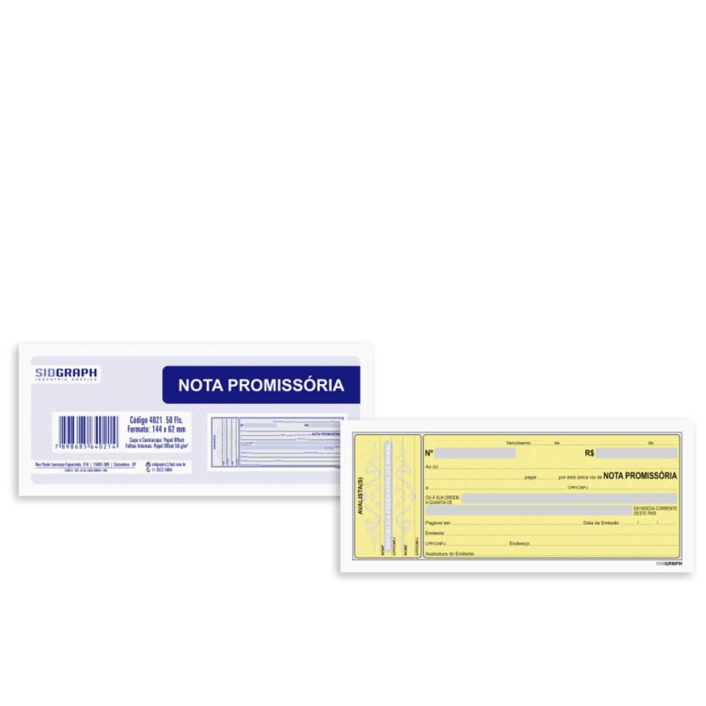 IMPR.NOTA PROMISSÓRIA 50FLS MINI 144X62 C/20 4021