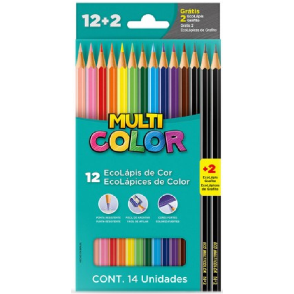 LAPIS DE COR MULTICOLOR GDE 12 COR+2 LAP.111200N2G