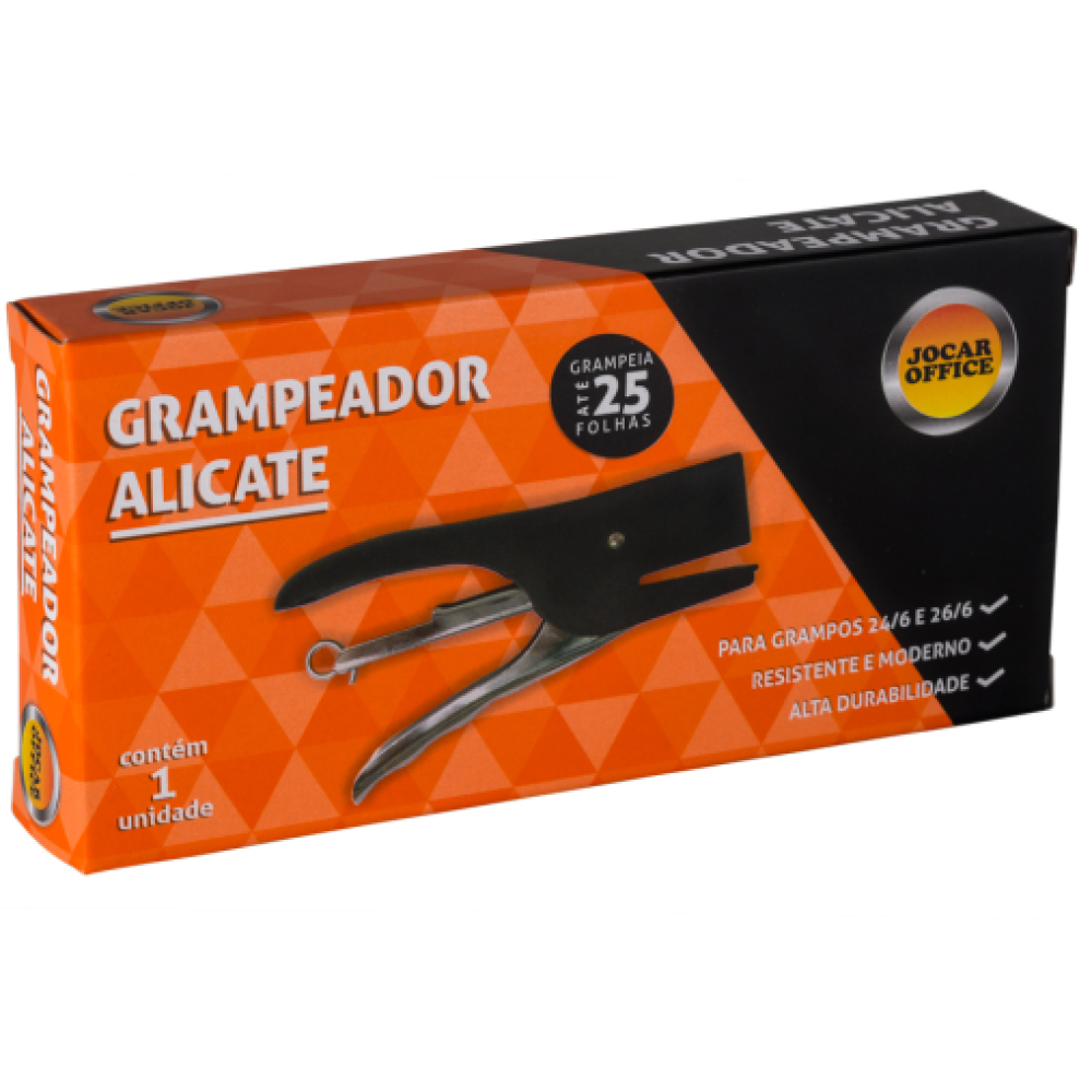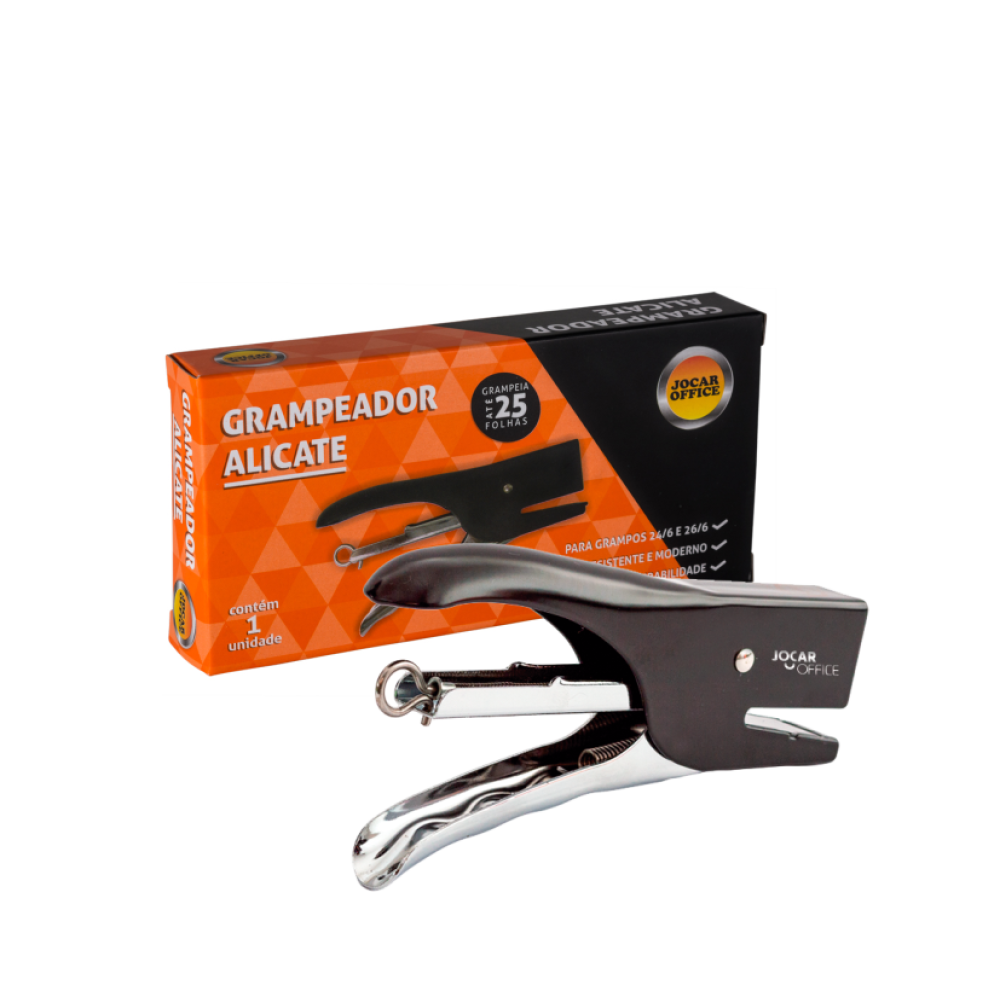 O Grampeador Alicate Metal é resistente e prático, ideal para grampear folhas de papel em escritórios, escolas ou uso doméstico. Seu corpo metálico oferece durabilidade e firmeza, garantindo grampeamentos precisos e seguros.