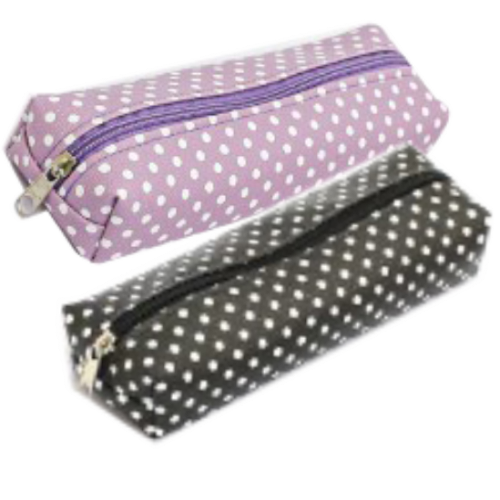 Estojo jovem com estampa poá em cores sortidas, ideal para organizar lápis, canetas, borrachas e outros acessórios escolares. Produzido em material resistente, oferece praticidade e durabilidade no uso diário, com fechamento em zíper que garante maior segurança dos itens.