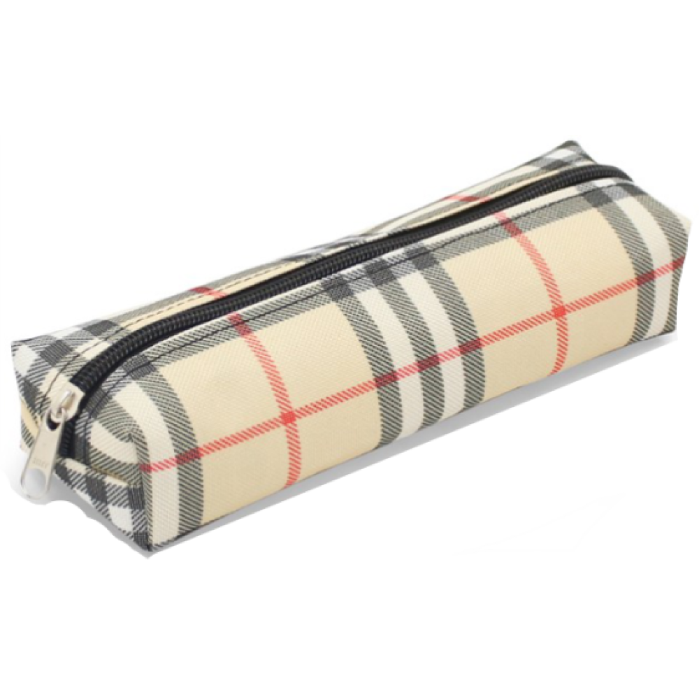 Estojo jovem com design quadriculado nas cores marrom e bege, ideal para organizar lápis, canetas, borrachas e outros acessórios escolares. Produzido em material resistente, oferece praticidade e durabilidade no uso diário, com fechamento em zíper que garante maior segurança dos itens.