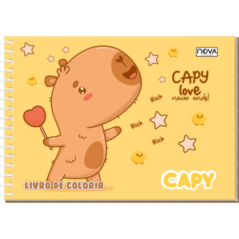 Livro de Colorir 120g 48 Folhas 15x21cm – Capa Holográfica Capy