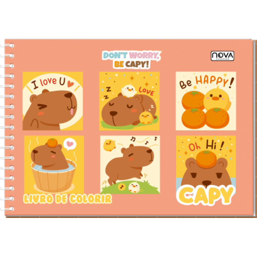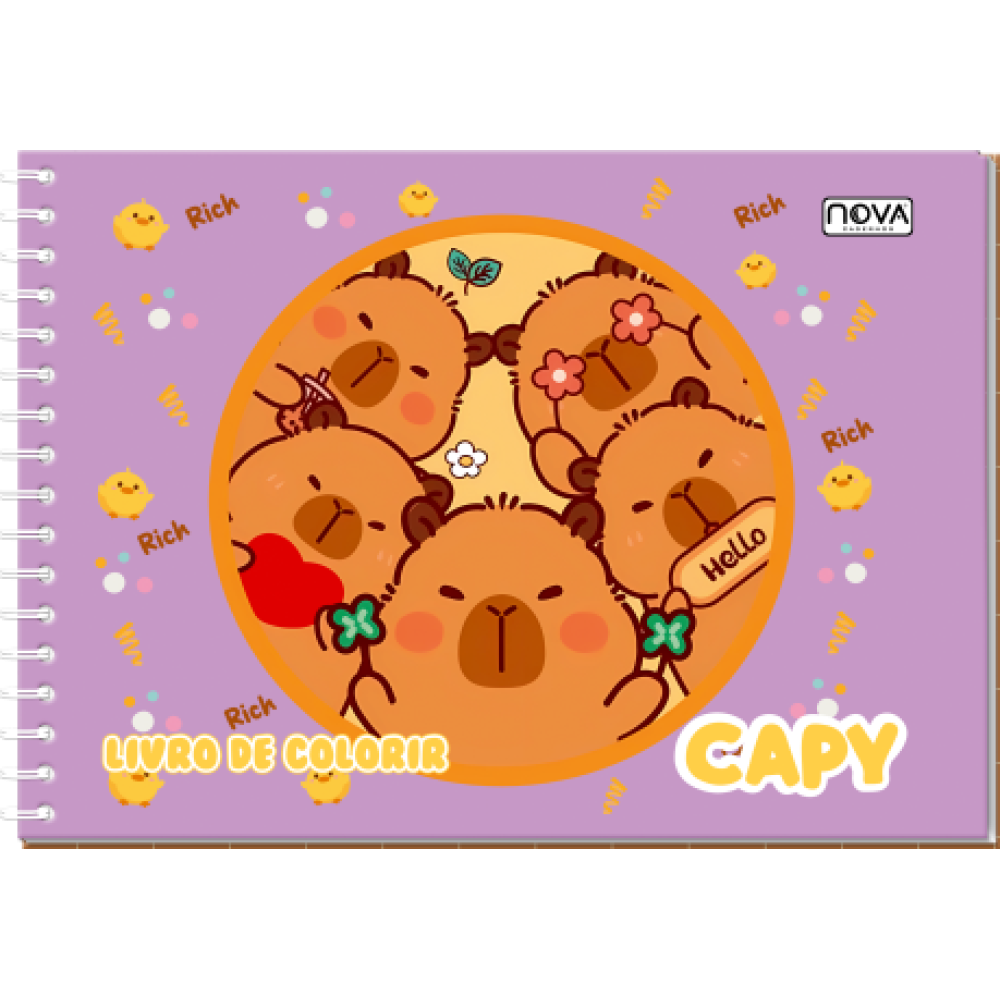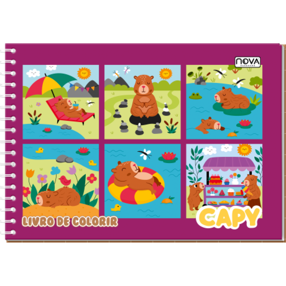 Livro de colorir com capa holográfica temática Capy, ideal para estimular a criatividade e proporcionar momentos de lazer. Possui 48 folhas de papel offset 120g, resistentes a diferentes tipos de lápis de cor, giz de cera e canetinhas. Formato prático, fácil de transportar e perfeito para uso escolar ou recreativo.