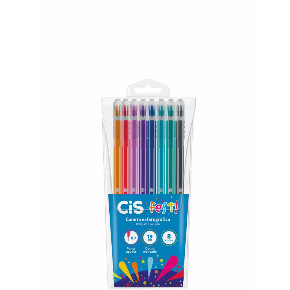CANETA ESF.FEST 0.7MM 19CM CORES SORT.CT.C/8