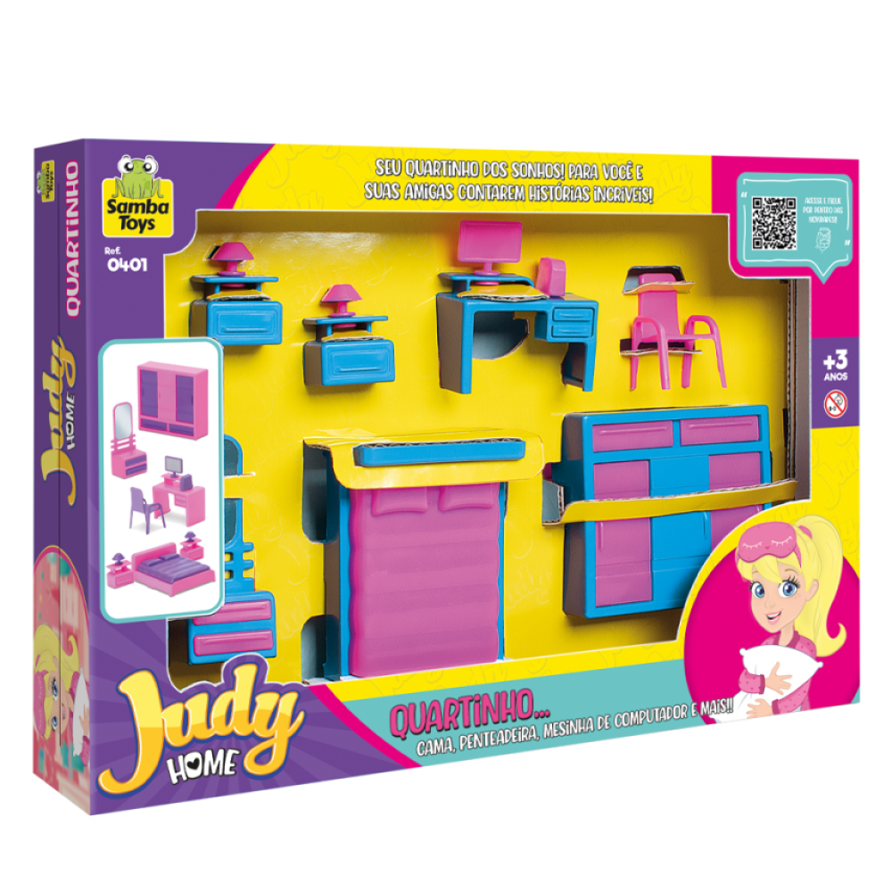 A Coleção Judy Home Quarto traz um conjunto encantador para brincadeiras de casinha, permitindo que as crianças montem e organizem um quarto completo em miniatura. Com 40 cm, o kit reúne móveis e acessórios que estimulam a imaginação e o faz-de-conta.