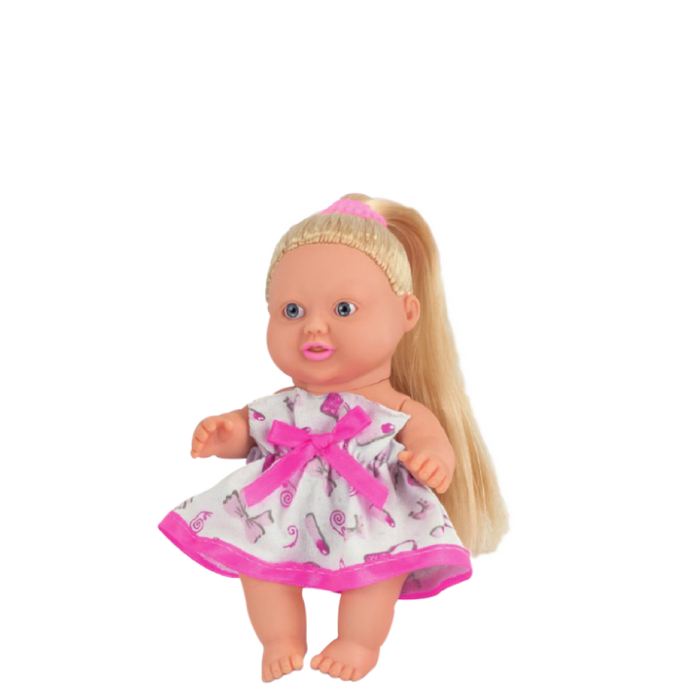 A Boneca Little Bee com Cabelo 23cm é confeccionada com vinil atóxico e tecido de alta qualidade, garantindo segurança e durabilidade.