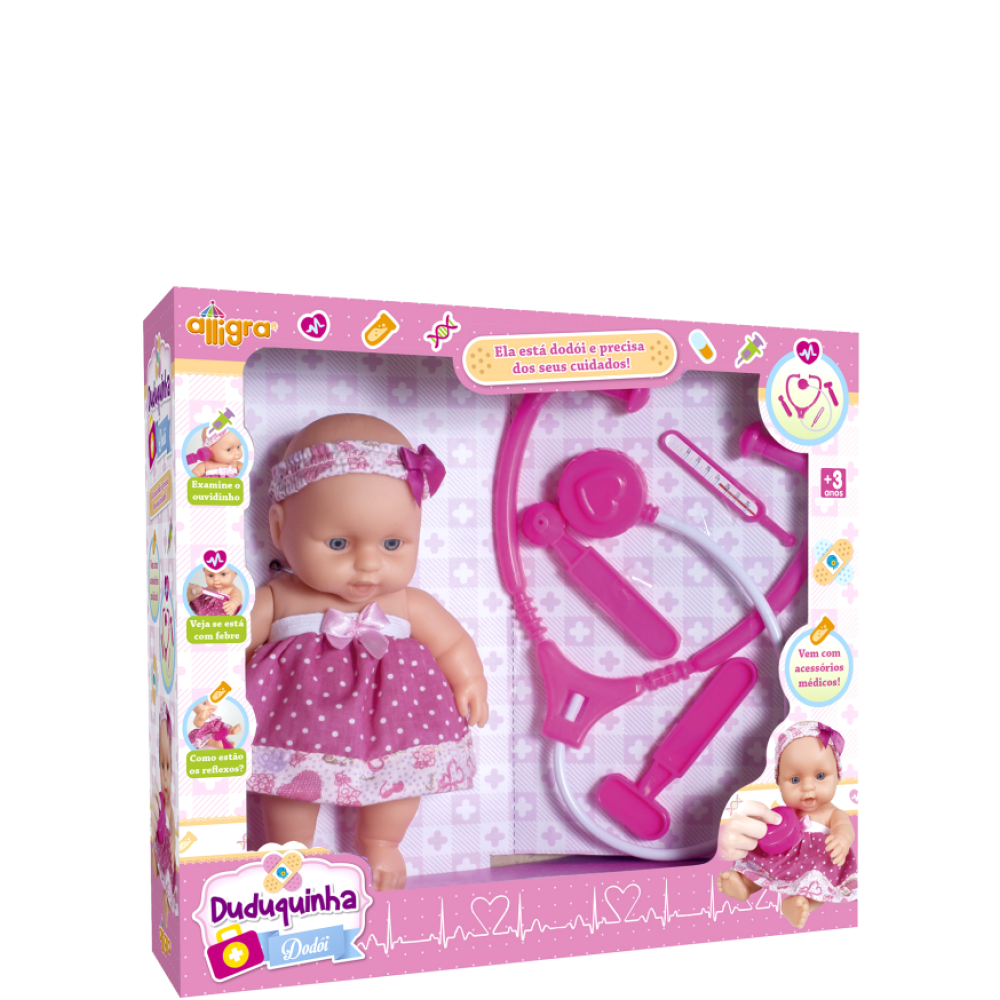 A Boneca Duduquinha Dodói vai conquistar o coração das crianças que adoram cuidar e brincar de médica! Com seu rostinho meigo e acessórios temáticos, ela ensina empatia, carinho e atenção de forma divertida.