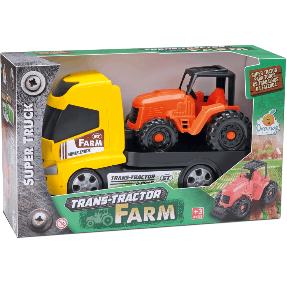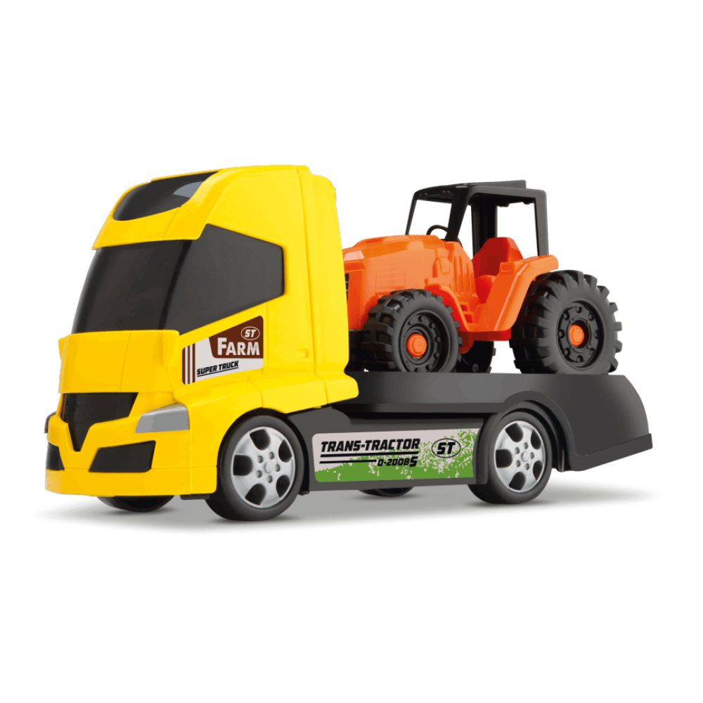 O conjunto inclui caminhão plataforma e trator destacável, perfeito para pequenas aventuras de transporte e construção. Feito em plástico resistente, proporciona brincadeiras seguras e criativas.