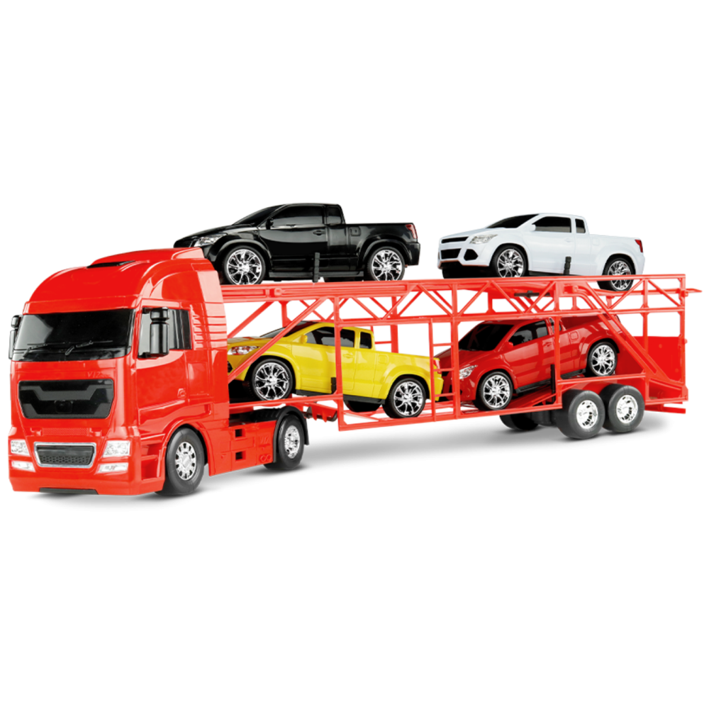 Inclui: 1 carreta cegonheira + 4 carrinhos