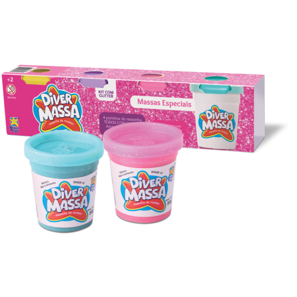 DIVER MASSA C/GLITTER C/4 POTES 50GR SORT.8123