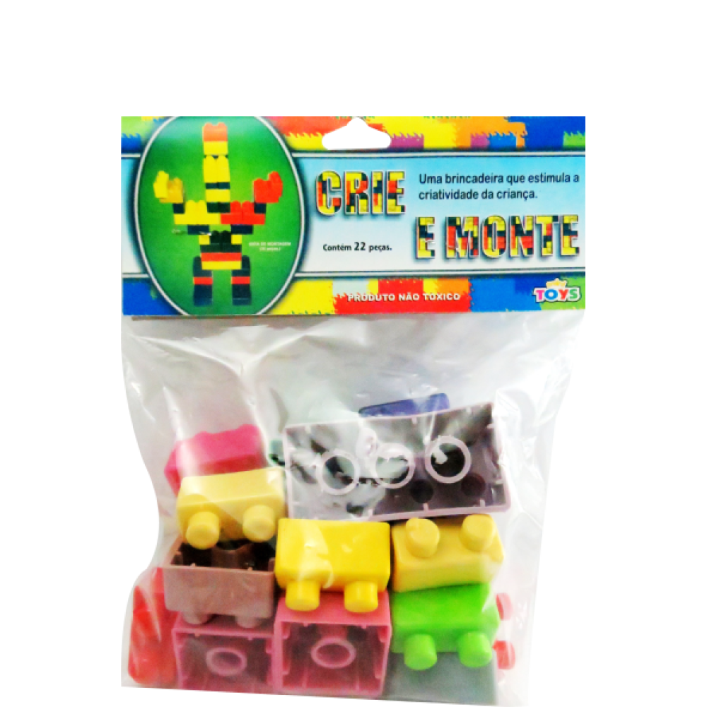 O conjunto Crie e Monte 22 Peças oferece blocos de encaixe leves e resistentes, ideais para incentivar a criatividade e o desenvolvimento infantil. As peças possuem formato simples e encaixe fácil, permitindo múltiplas possibilidades de construção.