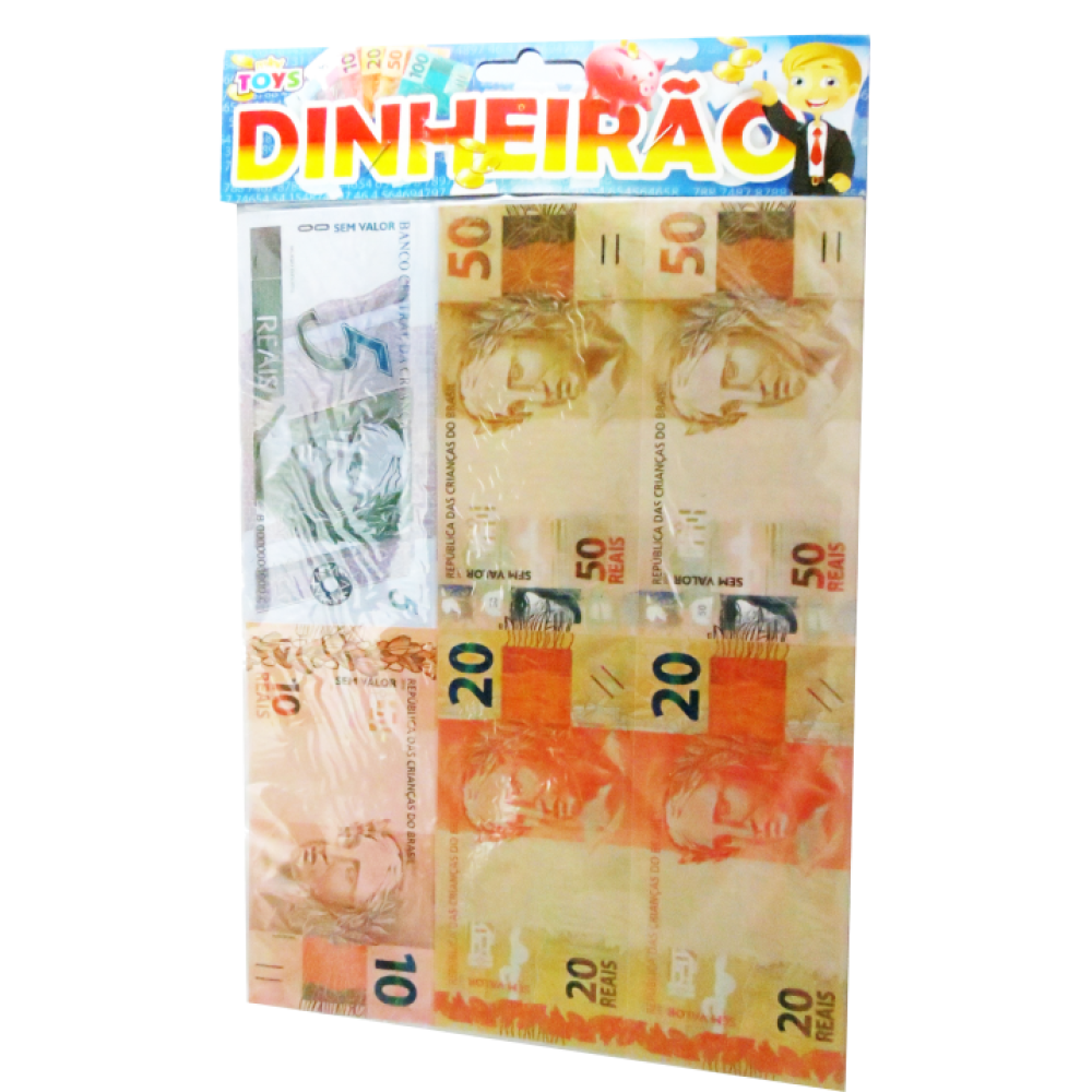O Dinheirão Pacote com 35 peças é um conjunto educativo desenvolvido para auxiliar crianças nas brincadeiras de faz de conta e no aprendizado de conceitos básicos de matemática e educação financeira.