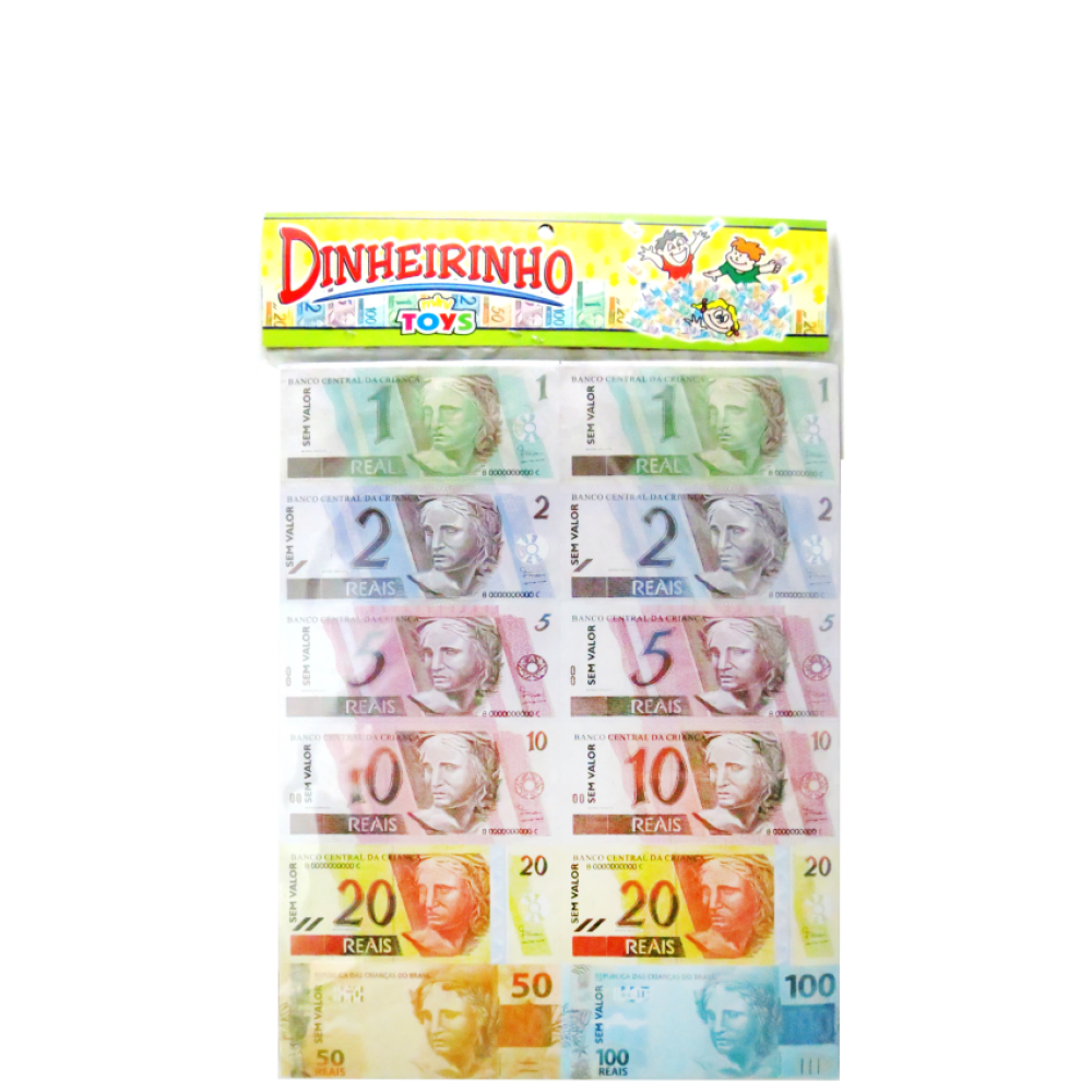 Modelos variados que simulam dinheiro real de forma lúdica.