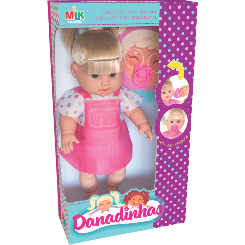 A Boneca Danadinhas Loira é perfeita para tornar a brincadeira divertida e interativa. Com 42cm de altura, permite que as crianças criem histórias, simulem cuidados e explorem a imaginação de forma lúdica.