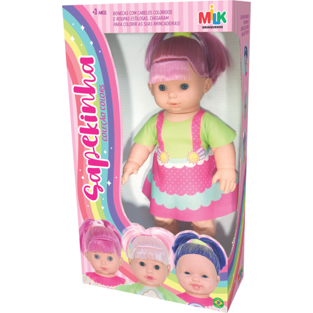 A Boneca Sapekinha Colors é pura alegria e diversão! Com 42 cm de altura, ela vem com roupinha colorida, cabelos macios e um visual encantador que estimula o faz de conta e o cuidado.