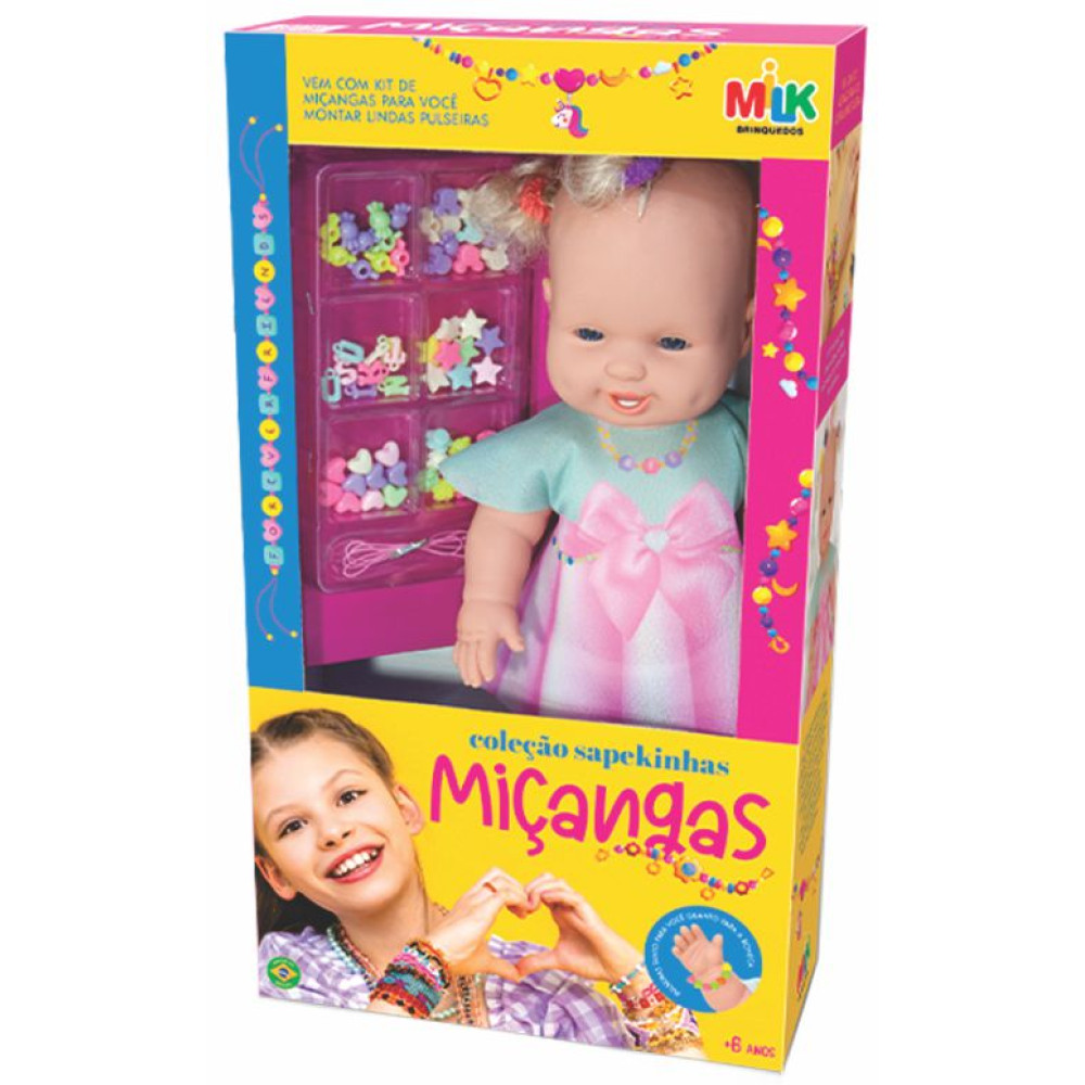 Linda, estilosa e cheia de personalidade! A Boneca Sapekinha Negra com Miçangas mede 42 cm e vem com belos cabelos macios e acessórios de miçangas coloridas para criar penteados incríveis.