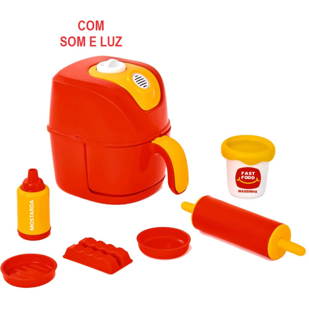 Possui efeitos de luz e som que simulam o funcionamento de uma air fryer de verdade, tornando a brincadeira ainda mais envolvente e interativa. Fabricada com materiais seguros e resistentes, é perfeita para estimular a criatividade, o faz de conta e as habilidades motoras.