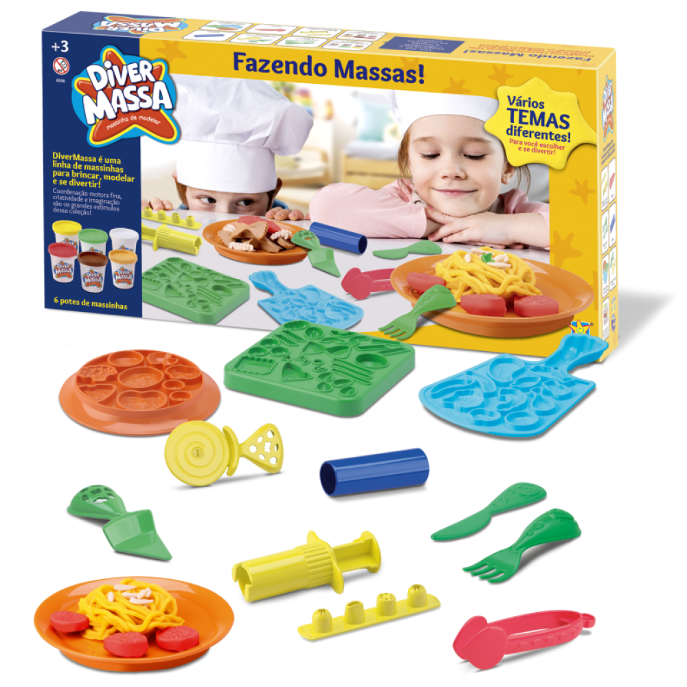 O Diver Massa Fazendo Massa é um conjunto completo para as crianças soltarem a imaginação e produzirem diferentes formas, figuras e misturas divertidas.